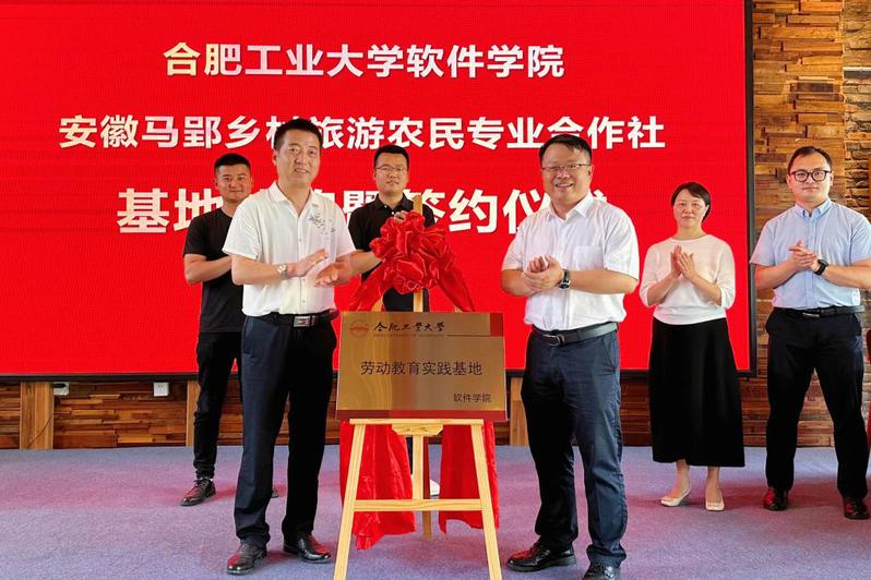 會(huì)上,楊磊對(duì)軟件學(xué)院師生一行表示熱烈歡迎,并介紹了馬郢村近年來(lái)發(fā)展情況,希望以此次共建大學(xué)生勞動(dòng)教育基地為契機(jī),進(jìn)一步加強(qiáng)雙方的溝通互動(dòng),發(fā)揮馬郢村的資源優(yōu)勢(shì),推動(dòng)勞動(dòng)教育項(xiàng)目化建設(shè)。年永琪對(duì)馬郢村為學(xué)生提供良好平臺(tái)表示衷心感謝,對(duì)學(xué)校開(kāi)展勞動(dòng)教育實(shí)踐基地建設(shè)的背景和學(xué)院基本情況做了重點(diǎn)介紹,希望進(jìn)一步加強(qiáng)校地合作,形成育人合力。同時(shí)希望同學(xué)們樹(shù)立崇尚勞動(dòng)、尊重勞動(dòng)的正確價(jià)值觀,在體驗(yàn)中激發(fā)熱愛(ài)自然、熱愛(ài)勞動(dòng)、熱愛(ài)生活的情懷,在勞動(dòng)實(shí)踐中“受教育、長(zhǎng)才干、做奉獻(xiàn)”。儲(chǔ)文靜和王義強(qiáng)代表校地雙方共同簽署了《合肥工業(yè)大學(xué)大學(xué)生勞動(dòng)教育基地協(xié)議書(shū)》,年永琪和楊磊共同為基地揭牌。