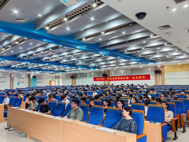 為提高學(xué)生“反詐防詐”的安全意識(shí)與能力,增強(qiáng)對(duì)自身財(cái)產(chǎn)的保護(hù)意識(shí),營(yíng)造平安和諧的校園環(huán)境,5月21日下午,軟件學(xué)院在翡翠湖校區(qū)圖書館報(bào)告廳開展“防范電信詐騙”安全教育講座,由芙蓉社區(qū)三級(jí)警長(zhǎng)何維順擔(dān)任主講。學(xué)院全體政工干部及400余名學(xué)生參加。活動(dòng)由學(xué)院黨委副書記儲(chǔ)文靜主持。