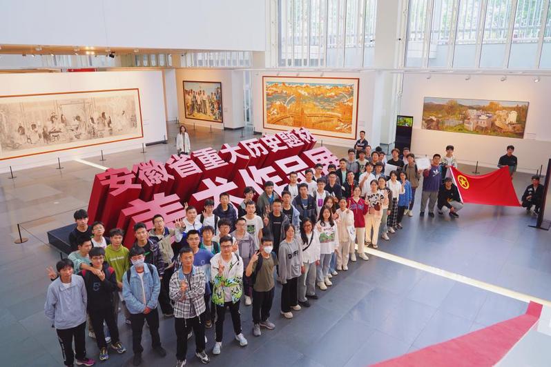 走進(jìn)安徽省美術(shù)館,同學(xué)們仿若置身藝術(shù)殿堂。這里有青年美術(shù)家的作品薈萃、國(guó)內(nèi)外藝術(shù)大師作品,有彰顯安徽地域特色的“新徽派版畫”,更有展現(xiàn)安徽歷史變遷和時(shí)代發(fā)展特征的“安徽省重大歷史題材美術(shù)作品展”。同學(xué)們認(rèn)真欣賞藝術(shù)畫作,在賞美的過程中提高了審美力。軟件工程22-2班團(tuán)支書董泓琳說:“不同歷史時(shí)期的重大事件、重要場(chǎng)景和杰出人物以國(guó)畫、油畫、版畫、雕刻等多種形式呈現(xiàn),讓我們對(duì)安徽省近現(xiàn)代發(fā)生的重大歷史事件和涌現(xiàn)出的杰出歷史人物有了更深入的了解,民族自豪感和愛國(guó)熱情一下子就被激發(fā)了。”