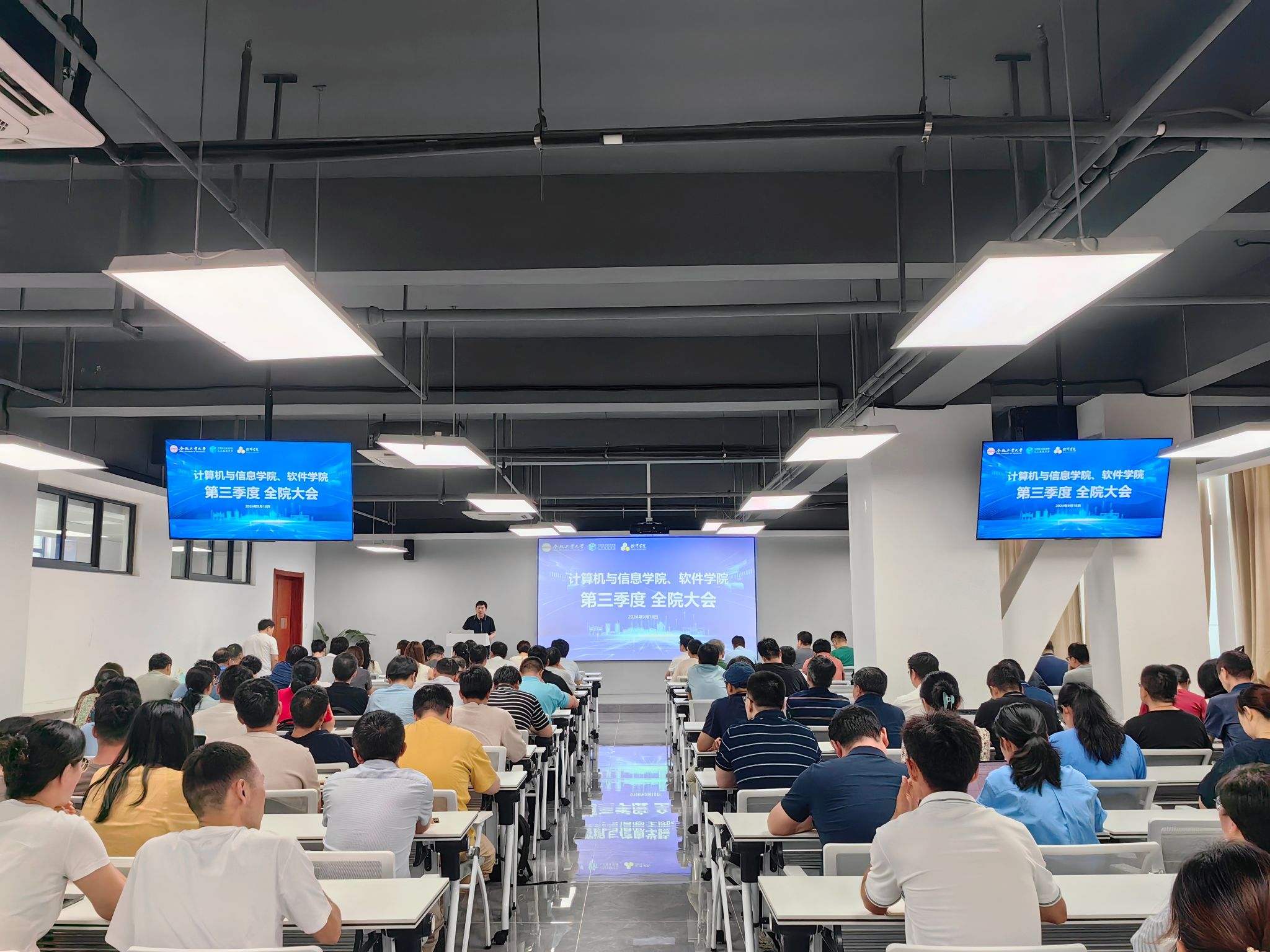 院長(zhǎng)洪日昌首先介紹了6月份以來新入職的8位老師,并代表學(xué)院對(duì)新進(jìn)教師表示熱烈的歡迎。接著,洪日昌對(duì)上半年學(xué)院在教學(xué)、科研、學(xué)生培養(yǎng)等方面取得的成果進(jìn)行了通報(bào),他表示,成績(jī)的背后凝結(jié)著每一位師生的汗水與智慧,希望全體教職工繼續(xù)保持積極向上的精神風(fēng)貌,不斷追求卓越。隨后,他重點(diǎn)解讀了“計(jì)算機(jī)科學(xué)與技術(shù)”一流學(xué)科培育計(jì)劃學(xué)科建設(shè)情況,對(duì)標(biāo)同類高校學(xué)科情況,深入剖析了學(xué)院在師資隊(duì)伍、人才培養(yǎng)、科研平臺(tái)和標(biāo)志性成果等方面存在的短板和不足。下一步,學(xué)院將面向計(jì)算機(jī)學(xué)科世界發(fā)展前沿凝練四大主攻方向,在高層次人才引育、科研與社會(huì)服務(wù)、國(guó)際交流與合作等方面繼續(xù)發(fā)力,進(jìn)一步推動(dòng)學(xué)科水平再上新臺(tái)階。