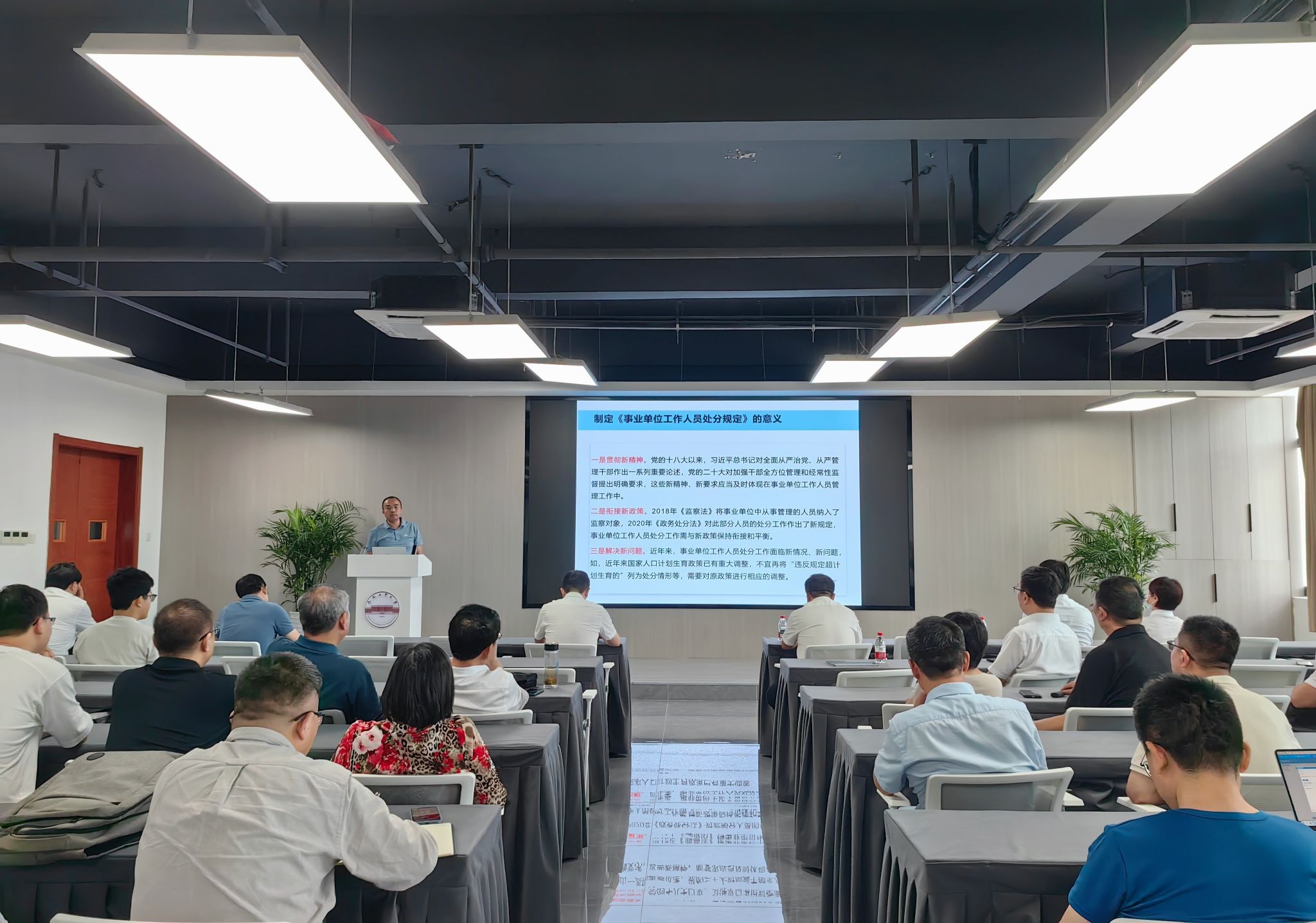 王輝副院長帶領(lǐng)教職工學習《事業(yè)單位工作人員處分規(guī)定》,并就重點條款進行了解讀,要求全體教職工依法履職、規(guī)范自身行為,做到廉潔自律、依法依規(guī)辦事。