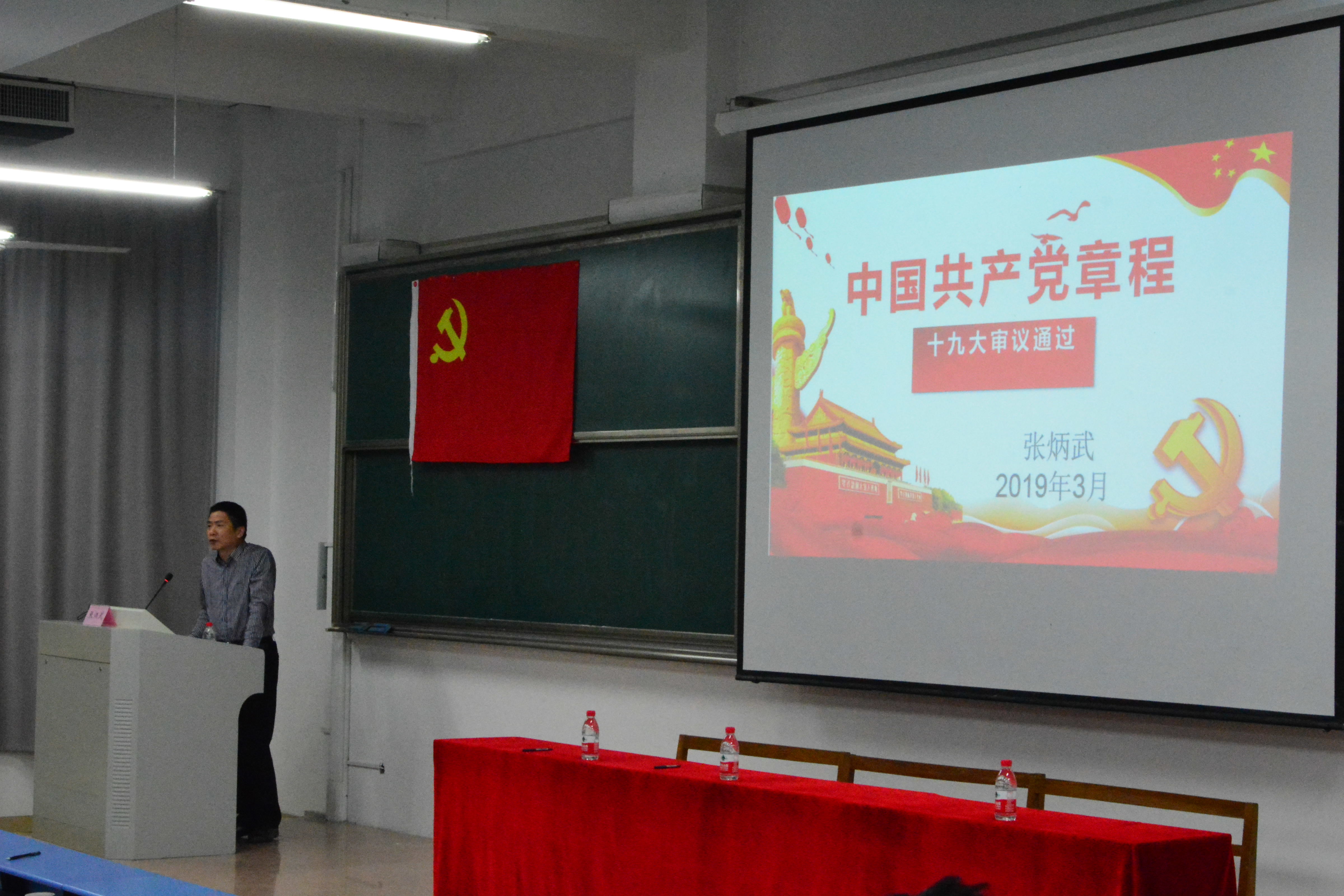 典禮后,軟件學(xué)院黨委副書記、副院長張炳武老師作了題為《黨員·黨章》的專題報告。強調(diào)了認(rèn)真學(xué)習(xí)黨章、嚴(yán)格遵守黨章的重要性和必要性,所有學(xué)員應(yīng)時刻以黨員的標(biāo)準(zhǔn)要求自己,起好模范帶頭作用。
