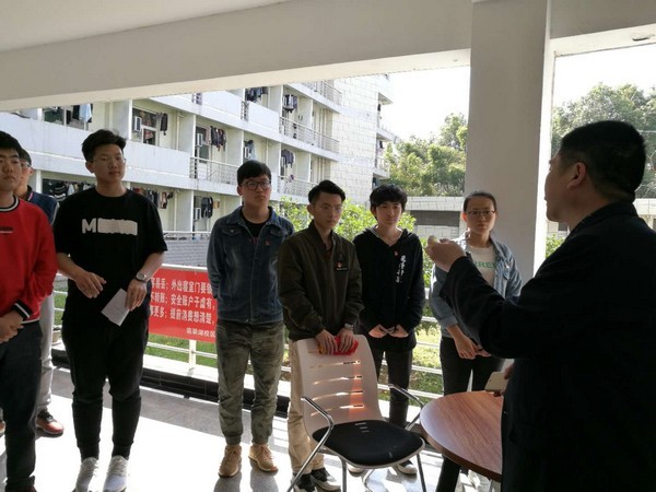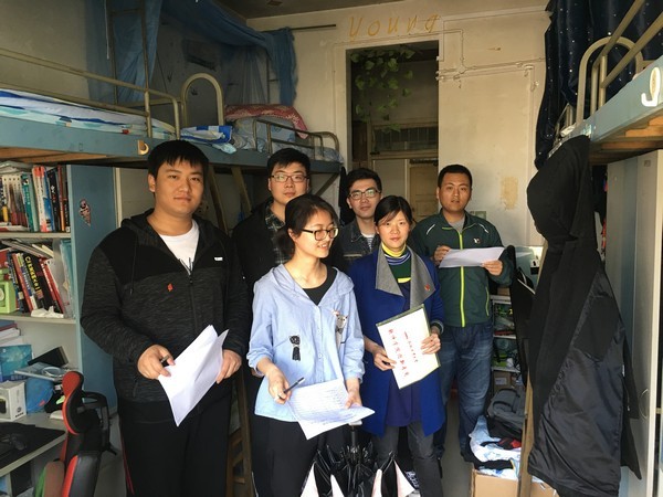 在學(xué)院黨委副書記張炳武老師的帶領(lǐng)下,檢查人員來到學(xué)生6號宿舍。張書記首先對參與本次安全衛(wèi)生檢查的師生黨員進(jìn)行了小組分工,共設(shè)3個檢查小組,每組由1-2名教工黨員帶隊,物業(yè)人員和學(xué)生黨員4-5名組成。他希望檢查人員可以深入寢室,了解學(xué)生在寢室的生活狀態(tài),能夠及時發(fā)現(xiàn)學(xué)生寢室存在的不衛(wèi)生、不文明、不安全的問題和隱患,并詳細(xì)記錄提出相應(yīng)整改要求。