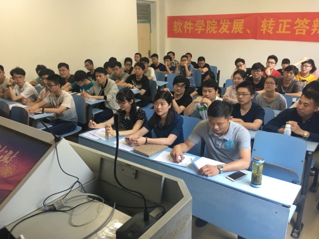 4月25日,軟件學(xué)院學(xué)生黨支部在翡翠湖校區(qū)六教110教室召開了學(xué)生黨員發(fā)展與轉(zhuǎn)正答辯會。汽車與交通工程學(xué)院輔導(dǎo)員安廣哲老師,軟件學(xué)院學(xué)生黨支部書記袁楊華老師及軟件學(xué)院輔導(dǎo)員鄭華老師出席并作為本次答辯會的評委,支部全體在校黨員和本次擬發(fā)展對象參加答辯會。