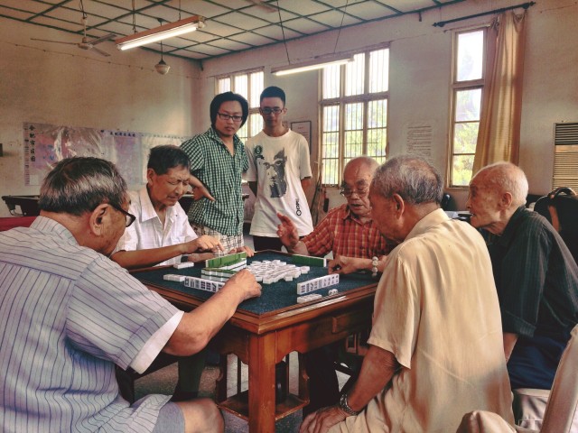同學(xué)們分成幾組,有的陪老人打臺(tái)球、有的陪老人下棋打麻將、有的陪老人聊天拉家常、還有的拉著老人的手喊爺爺好!