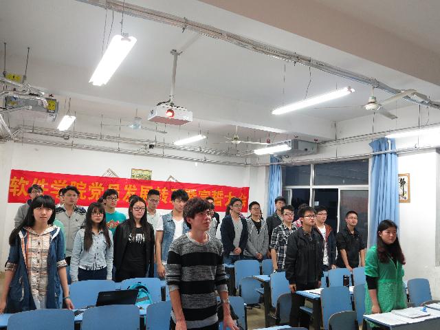 2015年4月25日晚,軟件學院學生黨支部黨員轉(zhuǎn)正、發(fā)展及宣誓大會在翡翠湖校區(qū)6教110順利召開。黨支部書記鄭華老師及全體在校黨員參加了本次會議。大會主要討論李姣姣等4名預備黨員的轉(zhuǎn)正問題,韓偉等8位同志的發(fā)展問題暨新老黨員宣誓儀式。